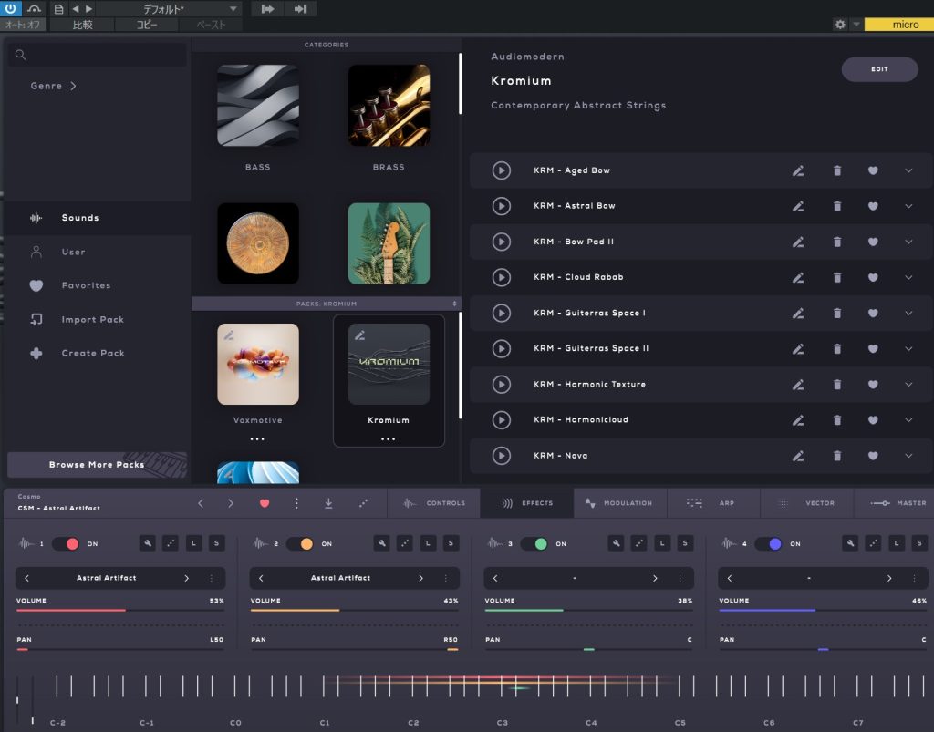 2024年10月5日現在出ているCosmos、Voxmotive、Kromiumでは普通のシンセのようなサウンドではなくアンビエントよりな音が多いです。歌ものの曲の後ろで鳴らすのはちょっと難しいかも。