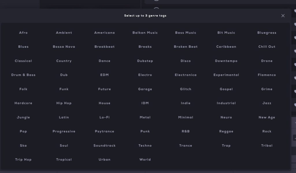 音楽ジャンルはあらかじめ各サンプル音に割り当てられていますが、ユーザーが再設定することができます。