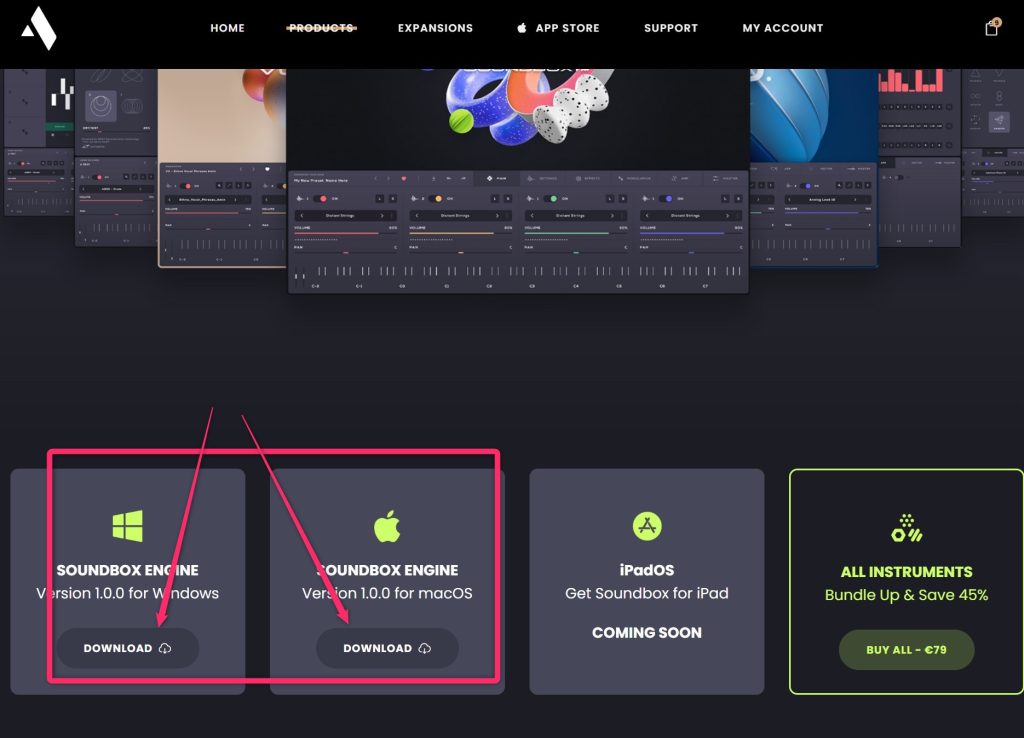 SoundboxのエンジンをAudiomodern公式ページからインストールします。