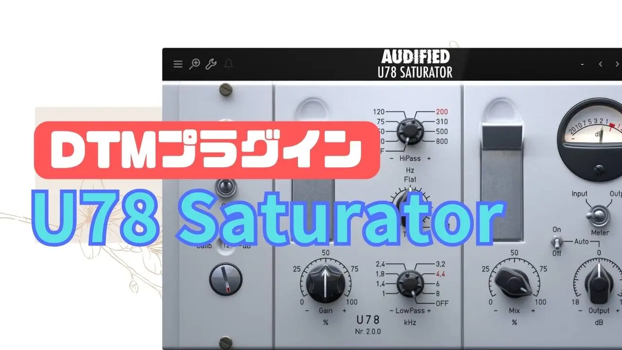 サチュレーションプラグインはDAW付属のプラグインで付いてこないことが多く、プラグインによって歪ませたときの音色に違いがあります。Audified U78 Saturatorの場合は飛び抜けて変な音というよりも『よくある定番のトーンを再現できる』王道なサチュレーションプラグイン。