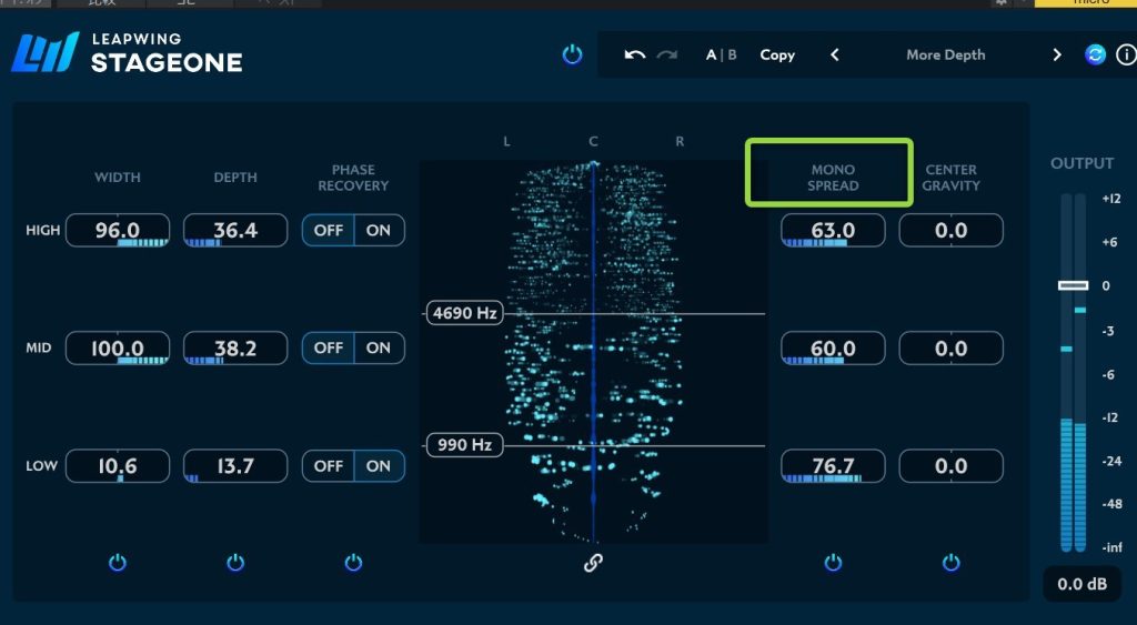 StageOne2を比較にあげているのは,StageOne2にはMono Spreadの機能があり、モノラルトラックでもステレオイメージャーを使って音像を広げられます。