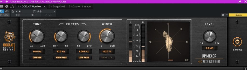 Fuse Audio Labsの OCELOT Upmixer(オセロットアップミキサー)はステレオイメージャープラグイン。