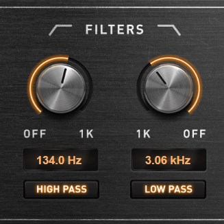 OCELOT Upmixerではハイパス・ローパスフィルターを使ってエフェクトがかかる帯域を指定します。