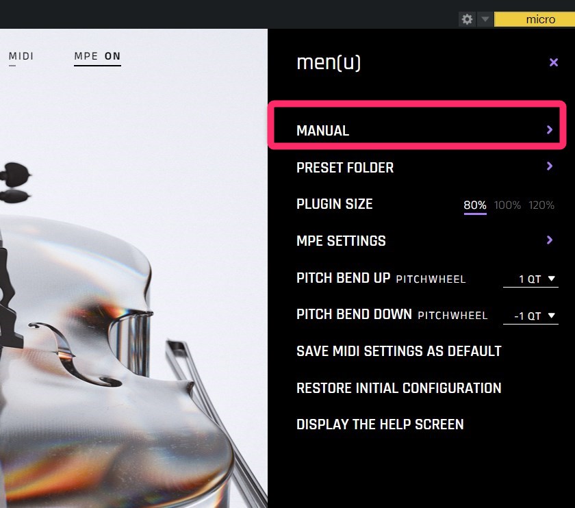 Menuの「MANUAL」を押すとPDFが表示されます。