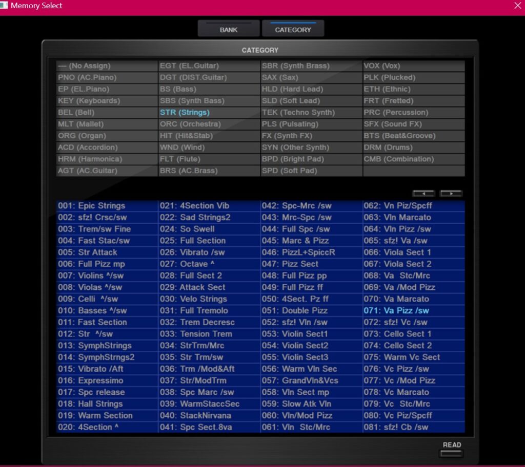SRX STRINGSには128のパッチが収録されており、大きく以下のカテゴリに分かれています: