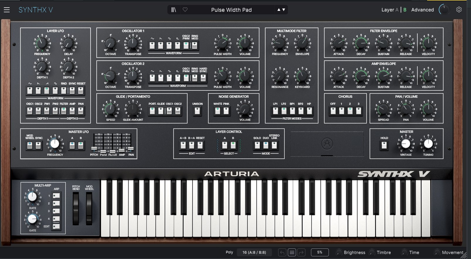 Synthx V は、オリジナル ハードウェアの非常にクリアな DCO サウンドを完璧に再現し、音楽の歴史を再現できます。