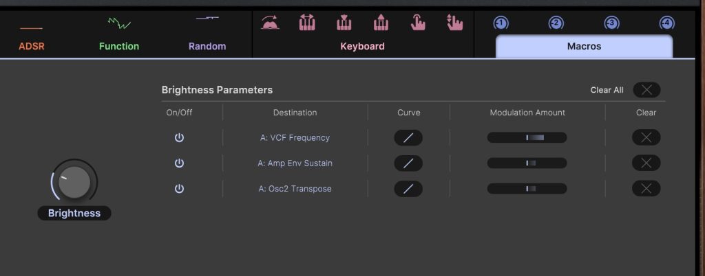 右下にある4つのマクロノブから、割り当てたいパラメータへドラッグ&ドロップすると瞬時にアサインされます。