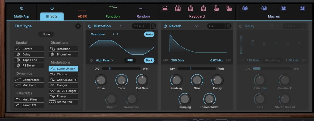から選んで設定できます。シンセで使われるエフェクトは網羅されています。