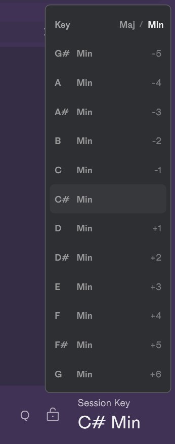 すべてのコードが演奏されるキー。DAWプロジェクトのキーと合わせてください。
