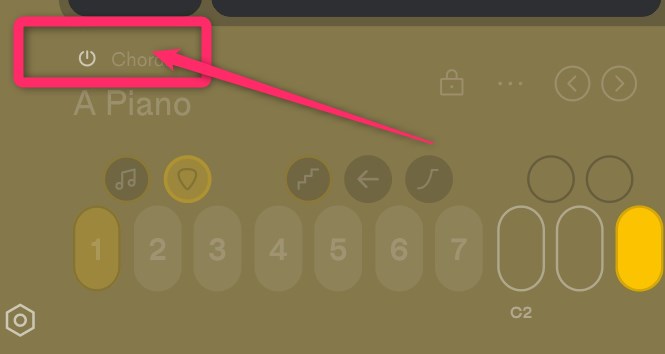 ChordにあるスイッチをOFFにすると、通常の音源のようにアルペジオ機能が動作せず好きな音を鳴らせます。