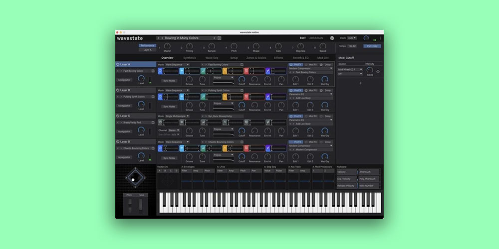 シーケンスの中に含めたパラメーターを時間軸で変化させていくことができるウェーブ・シーケンシング2.0を搭載した画期的なシンセです。
