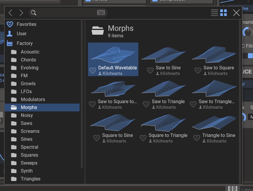 意外とウェーブテーブルの選択画面でお気に入り機能がついているシンセは少ないですよね。