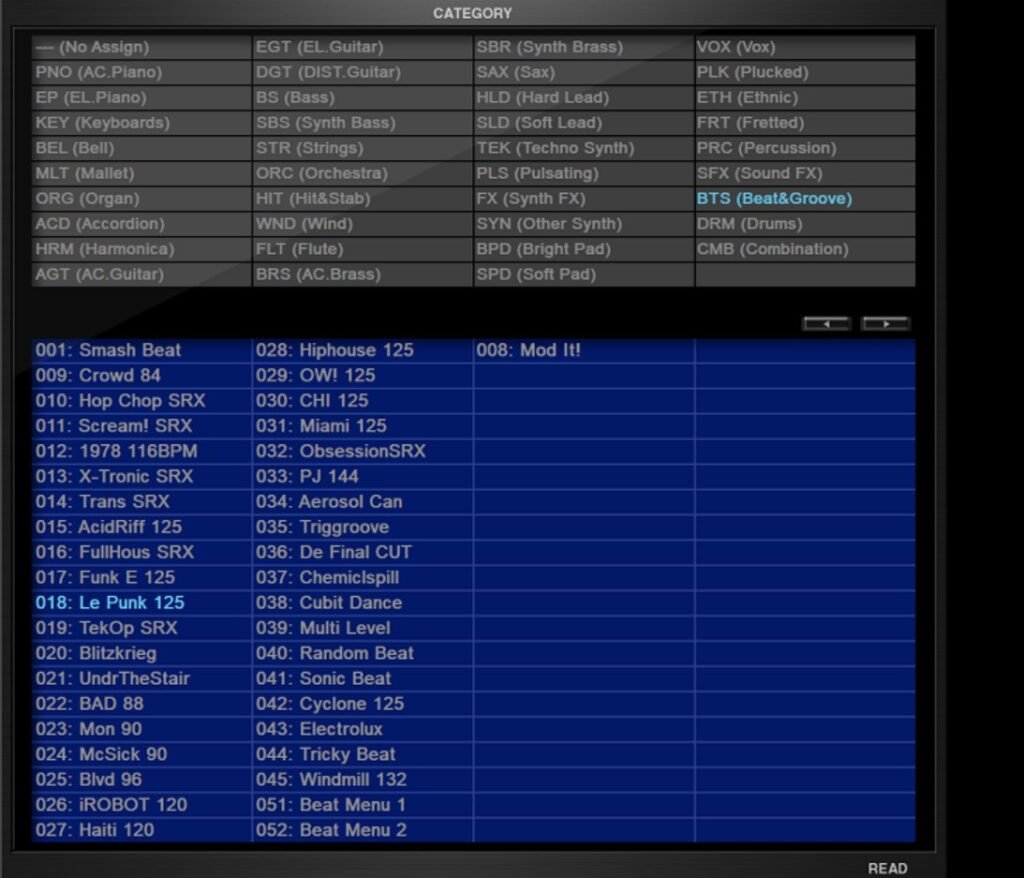 BTS(Beat&Groove)のカテゴリを選ぶと