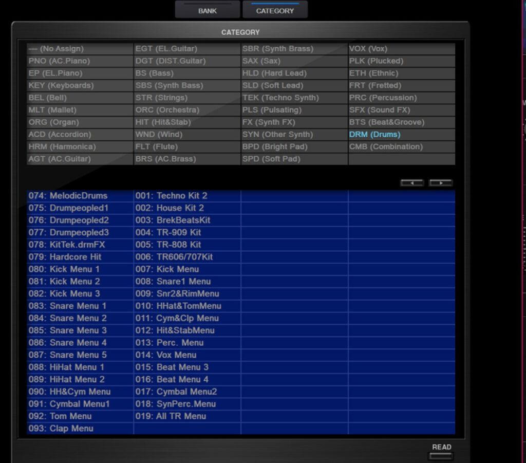 548種のプリセットパッチは大きく以下のカテゴリです:
