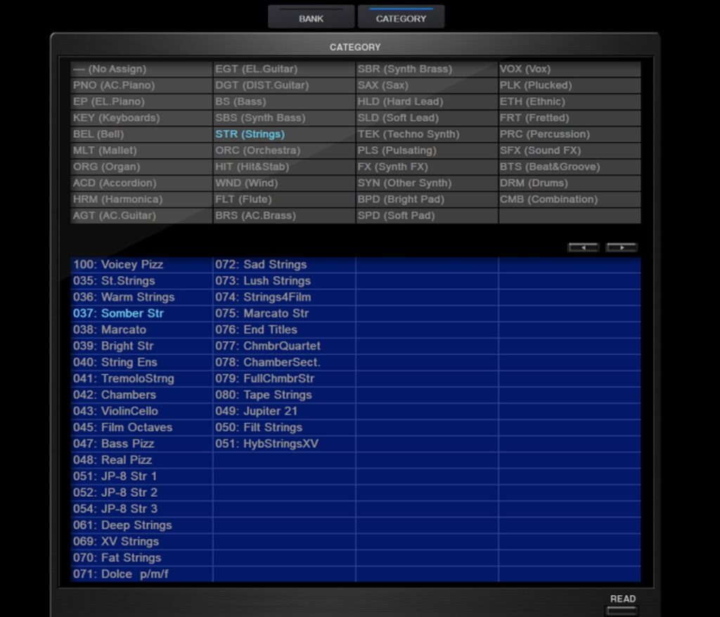 - PATCH FINDERモードでカテゴリ別に音色を検索可能