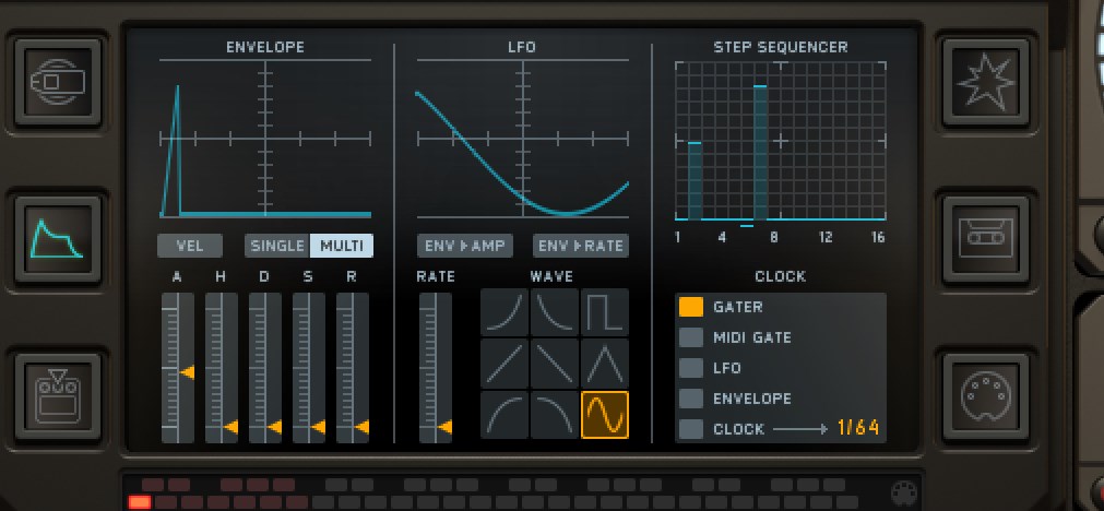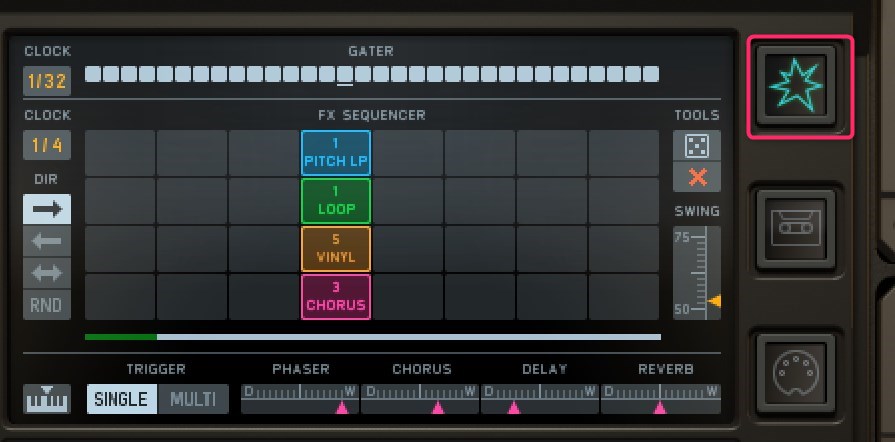 4 つのシーケンサーレーンがあり、それぞれに 8 つのエフェクトを選択できます