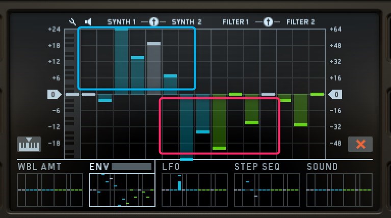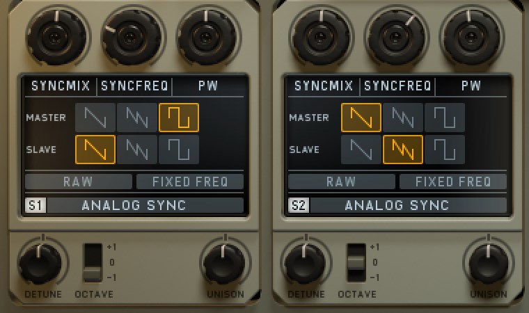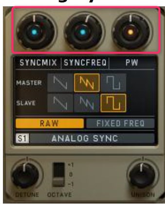 Master,Slaveで2つの波形を合体させて鳴らせます。SYNCMIXで比率を変更
