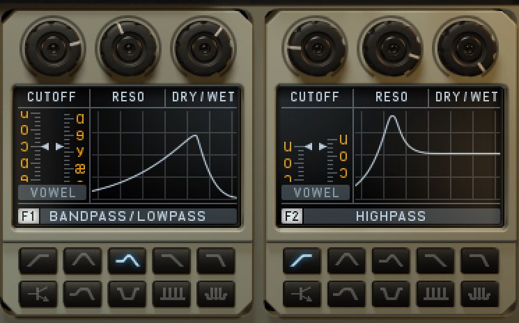 Sugar Bytes Cyclopsは2基のシンセと2つのフィルターがあり、この組み合わせを4つのルーティングプリセットが用意されている中で音作りします。