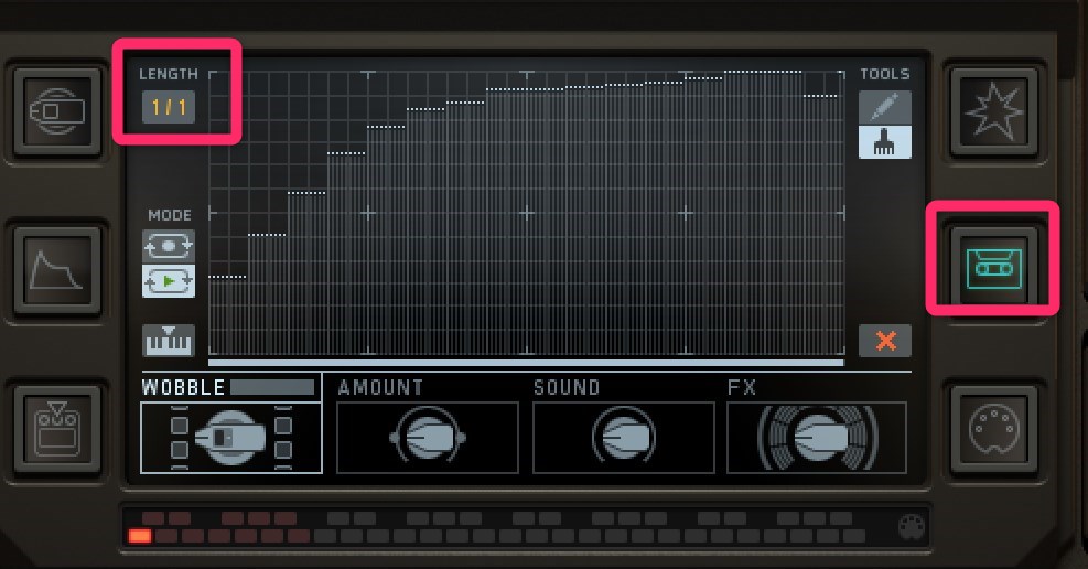 Wobbleノブ、Amountノブ、Soundノブ、FXノブの動きを制御します。