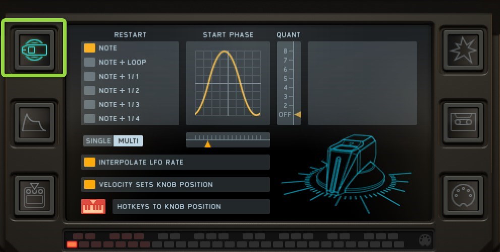 Interpolate:このボタンは、LFO 速度を切り替えるかフェードするかを決定します。