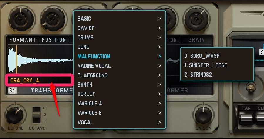 TRANSFORMER(ウェーブテーブルシンセ)のオシレーターにフォルマントシフトが付いているのもSugar Bytes Cyclopsの面白い点です。