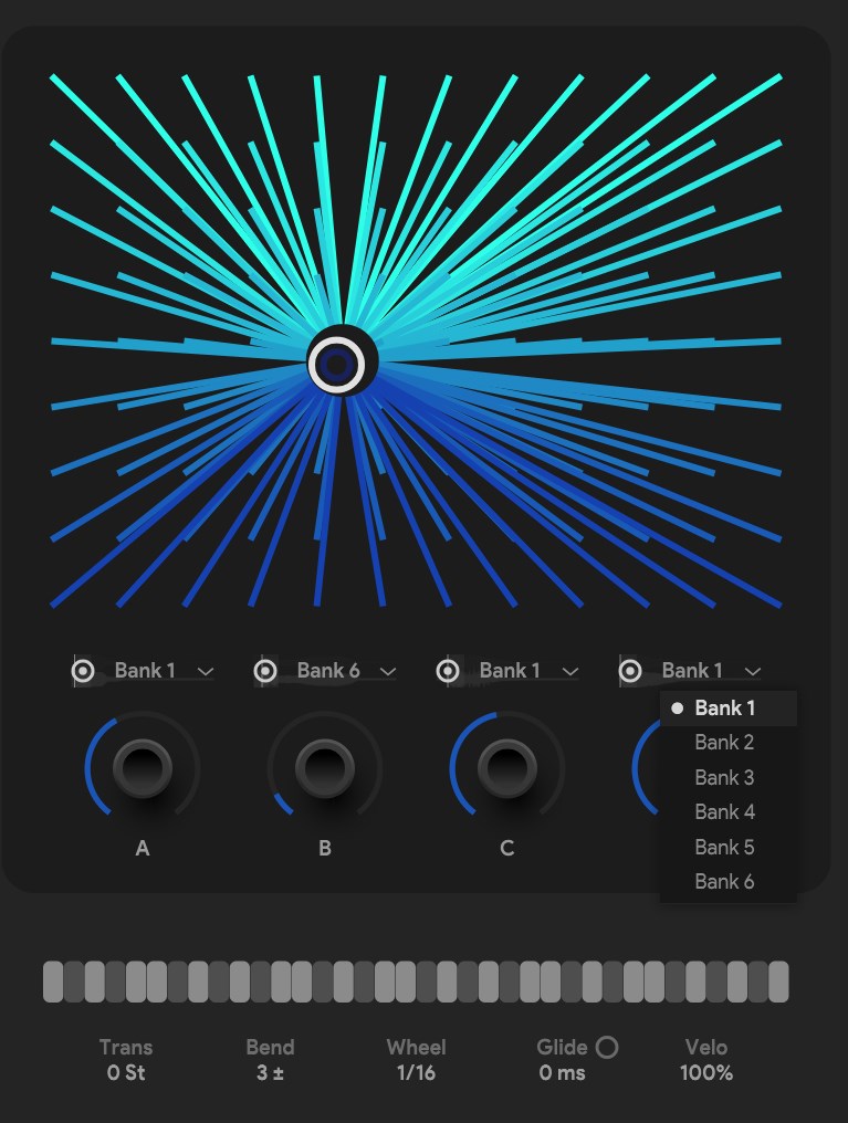 ユーザーは、6つのバンクに分類された合計600の波形から好きなものを選んでアサインします。