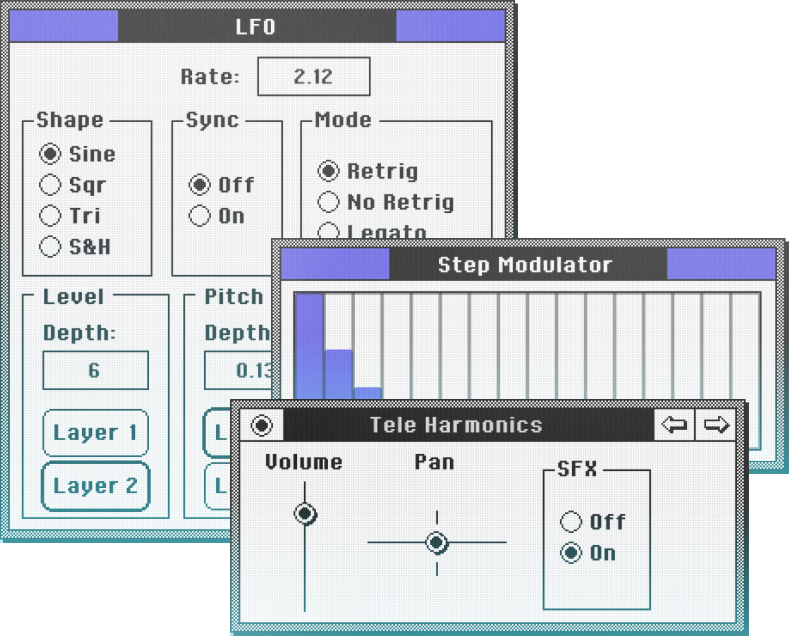 (03:06) 「Modulation」タブにはステップモジュレーターとLFOが搭載されており、それぞれ各レイヤー(レベル/ピッチ/フィルター)にアサイン可能で、ダイナミックな動きとサウンドシェイピングを実現します。