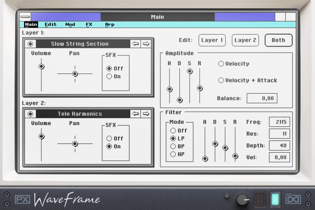 UVI PX WaveFrameは、1980年代のWaveFrame AudioFrameというデジタルサンプラーのエッセンスを、現代風に再現したもの。
