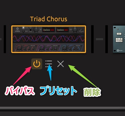 エフェクトチェーンが増えていくと横長に表示されるため、一目で確認ができなくなるのが難点ですが、