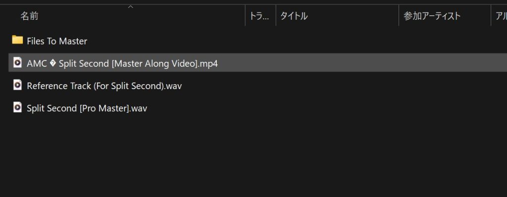 ファイルを展開すると講座の内容となっている「Master Along Video」の他にリファレンス用のファイルと完成比較用のPro Masterを聞くことができます。