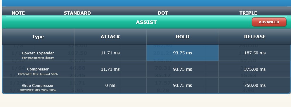 BPMに合わせたコンプレッサーのAttack,Hold,Relese値を提案してくれるプラグイン!