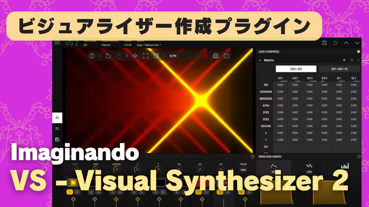 Imaginando VS-2は、ポルトガルのクリエイティブブランドImaginandoが作ったビジュアルシンセサイザーです。音声やMIDIに反応してリアルタイムでビジュアルを生成するツールで、WindowsやmacOSのDAW(Ableton LiveとかLogic Pro)でプラグインとして使えます。iOS版もありますよ!