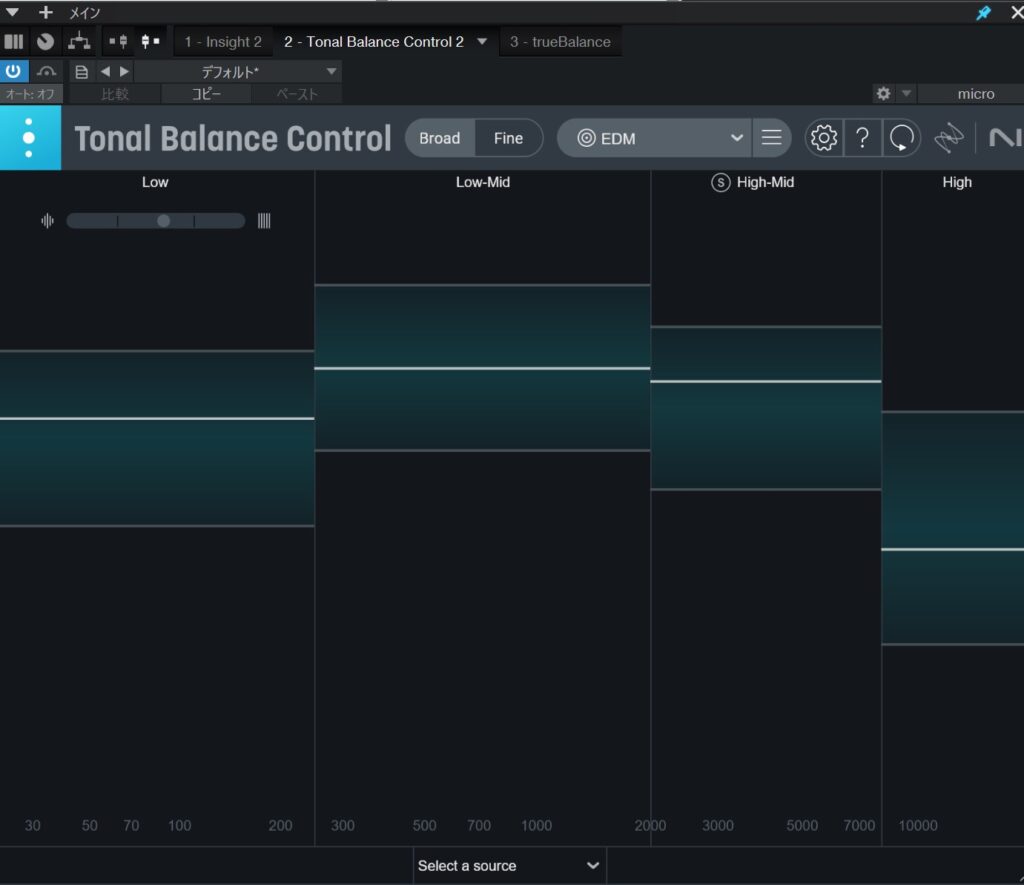 通常のアナライザーと違ってMMultiAnalyzerを挿したトラックのみがアナライザー画面で表示されます。