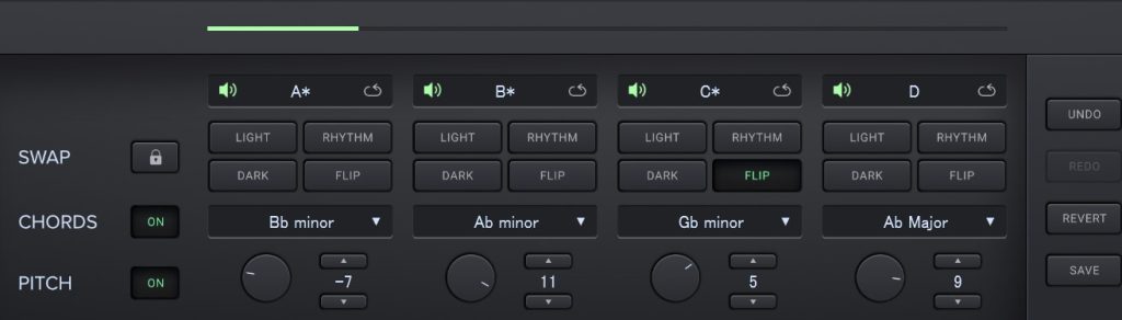 コードやメロディの高さが決まっている場合に便利な機能です。ループ再生するため聞きながらあーでもないこーでもない検討できます。UNDO/REDOができるので巻き戻しと先送りで履歴を前後できます。