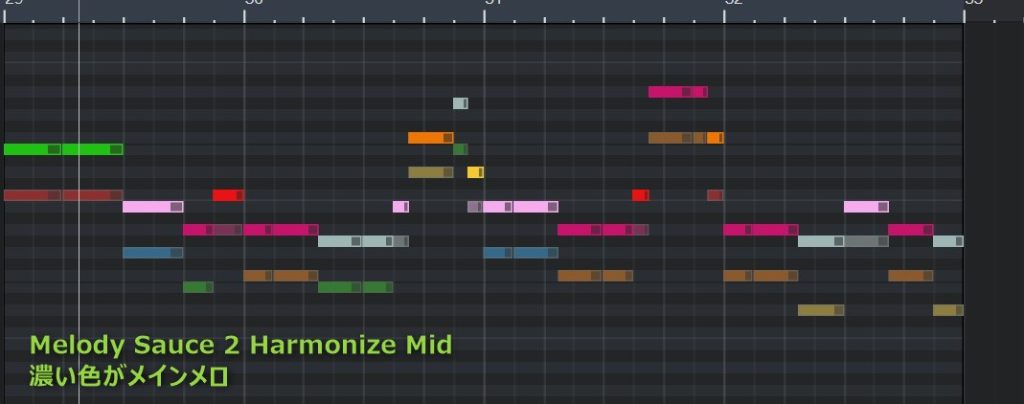 作成時にHarmonizeがONになっているとMIDI生成されたときにハーモニーパートが追加されてメロディ生成されます。