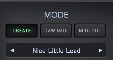 CREATEメロディ生成モード。PADを押したりMIDIエクスポートするときに使用(Melody Sauce 2内蔵音源が再生される)
