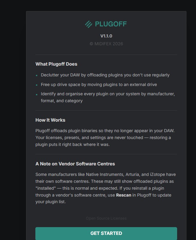 それが、MIDIFEXが提供するインテリジェントなプラグインマネージャー「Plug-Off(プラグオフ)」です。
