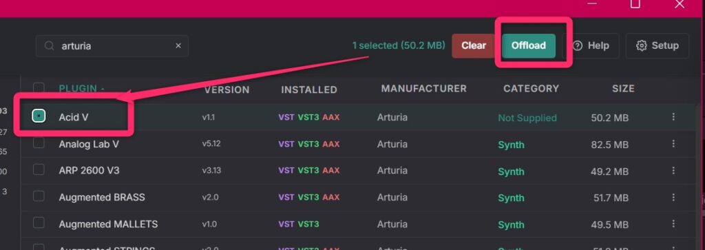 VSTファイルなので空いているハードディスクに移して使いたくなったときに戻すといった方法でも良さそう。自分はそうしました。