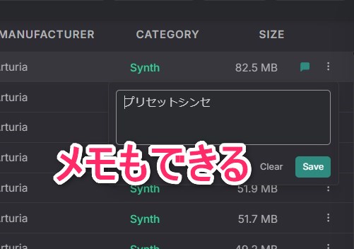 どんなプラグインかわからなくなった時用にメモが残せます。
