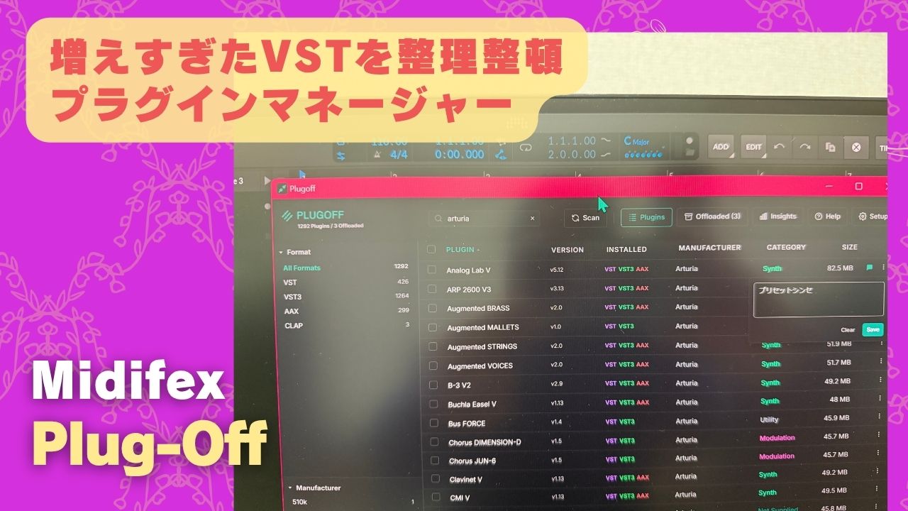 増えすぎたVSTを整理整頓!無料のプラグインマネージャー「Plug-Off」導入ガイド