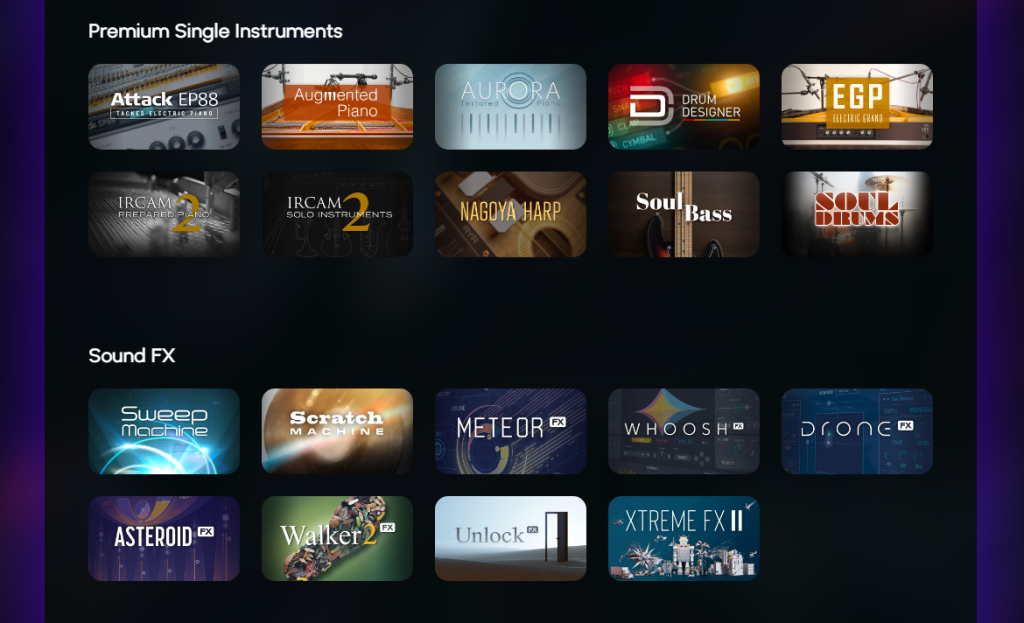 UVIの音源はバンド系から民族楽器音源・オーケストラ・ゲームや映像音楽で使うサウンドエフェクトまで幅広く押さえられていて、Sonic Bundleで作れないジャンルはないはずです。