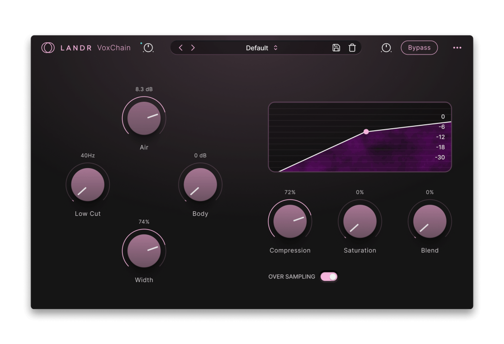 高度な処理を施しても、クリアな音質を保ちます。LANDR VoxChainのオーバーサンプリングは、ボーカル制作のあらゆる段階でディテール、明瞭さ、豊かさを保ちます。