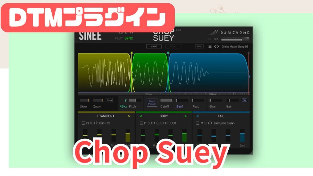 Tracktion Chop Suey使ってみた Tracktion Chop Suey は力強いサウンドを作りことができるキックシンセサイザー! キックの成分をTransient,Body,Tailと3つ分けて調整しキックの音にトコトンこだわることができる画期的な仕様になっています。 ...