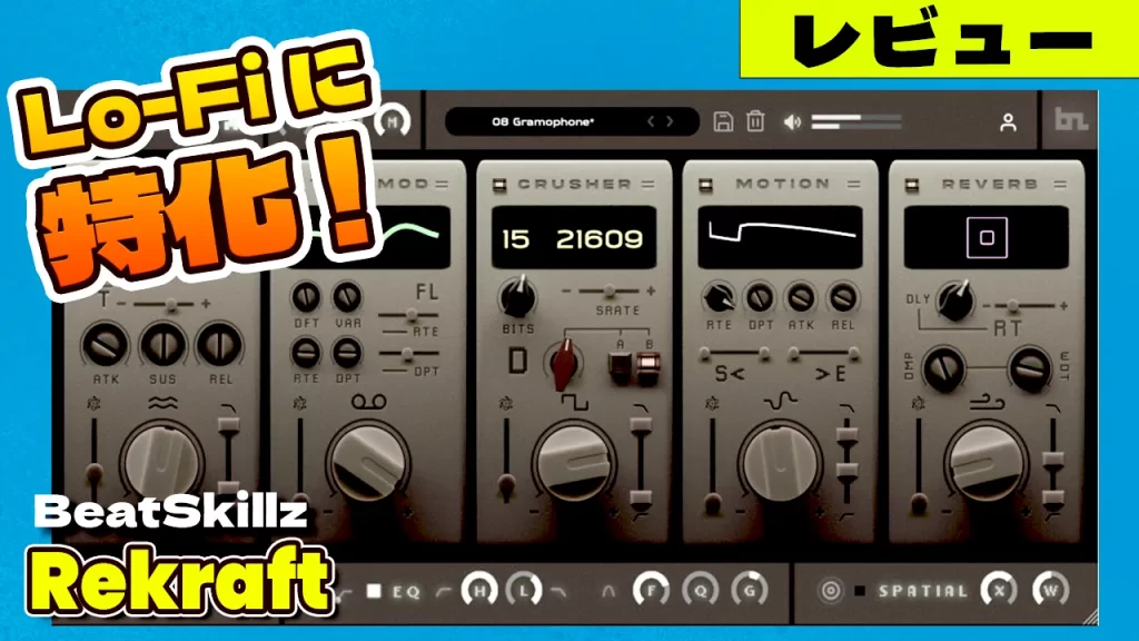 https://www.youtube.com/embed/yLsAZDBxPNE BeatSkillz Rekraft はローファイ曲を作るのに最適なエフェクトを集めたモジュール式のマルチエフェクタープラグイン。 モジュール式は実際のモジュールエフェクトのようにエフェクトの接続順番をユーザー... -