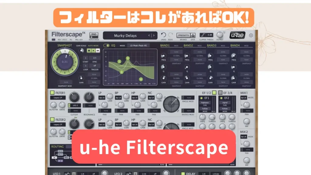 u-he Filterscapeセール!フィルターはコレがあればOK!独自サウンドを作りだせるプラグイン