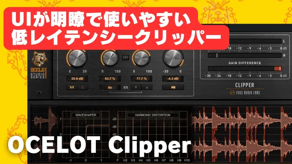 Fuse Audio Labsの OCELOT Clipper(オセロットクリッパー)は新しく登場したクリッパープラグイン。 Fuse Audio LabsはSNSだとあまり名前を見かけることがないかもしれませんが、プラグインの性能で優れているだけでなく価格が抑えられているので、熟練者... -