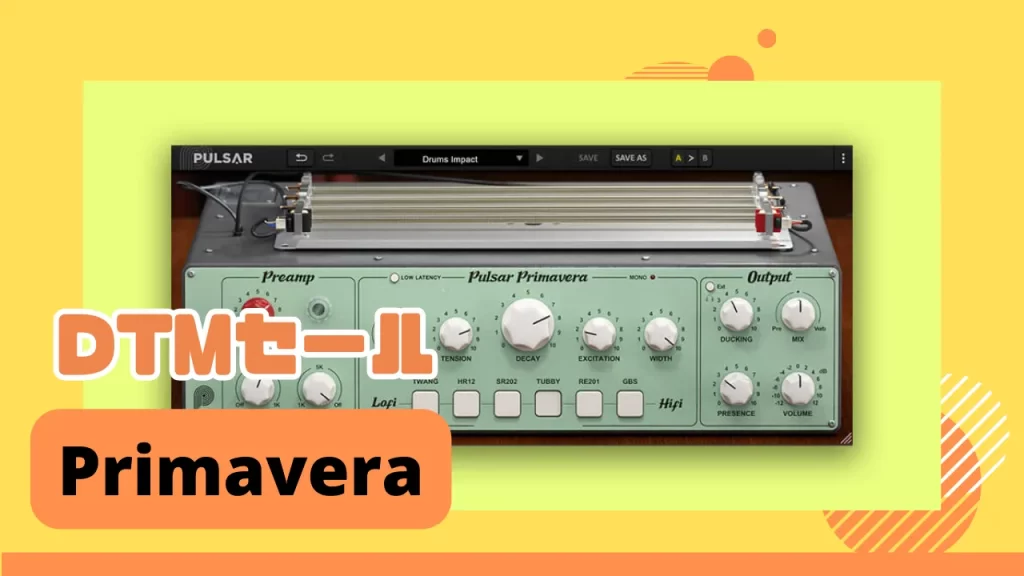 美しくも儚いスプリング・リバーブトーン!! 「Pulsar Audio Primavera」のセール期間や割引率調査・より安く買えるバンドルをまとめていきます。 「Pulsar Audio Primavera」はスプリング・リバーブプラグイン! スプリング・リバーブとして有...