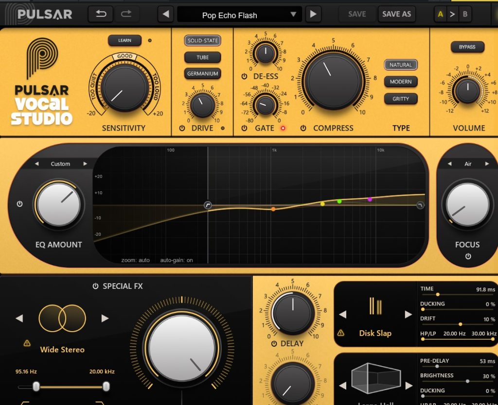 PulsarAudioからボーカルに特化したチャンネル・ストリッププラグイン「Pulsar Vocal Studio 」が登場。 わかりやすい、見やすい、使いやすいと三拍子揃ったミラクルなボーカルチャンネルストリップ! SENSITIVIYのLEARNボタンを押して適切な入力値にして... -