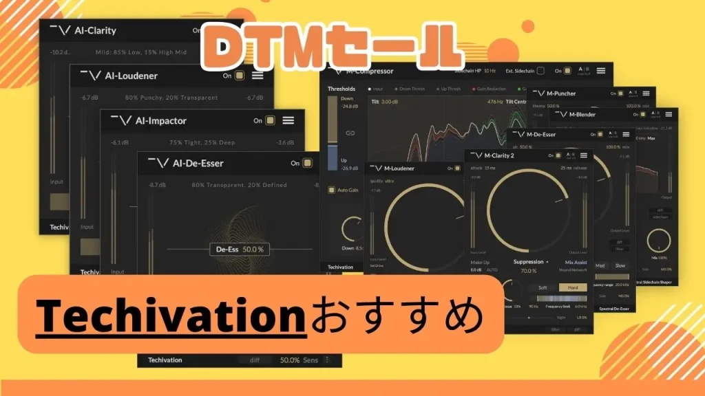 TechivationおすすめVSTプラグインを紹介! シンプルで使いやすいTechivationプラグイン! どのプラグインもクオリティが高く、じわじわ人気を集めているディベロッパーです。特にSNS界隈では毎回新作が出ると話題になるプラグイン。価格も抑えられていて... -